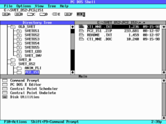 PC-DOS 7 se dodává v relativně malé krabici, jenž obsahuje 5 disket 3.5", velmi podrobný uživatelský manuál (600 stran), registrační kartu a seznam všech dostupných národních kódových stránek. Na uživatelském manuálu mne vedle kvalitního textu potěšil zejména jeho rozsah, který podstatně převyšuje uživatelskou příručku k operačnímu systému OS/2 Warp 3.0 (370 stran). Protože nová verze PC-DOSu nabízí mnoho kvalitních programů (viz další text), IBM se rozhodla u 1. instalační diskety použít běžný formát FAT a na ostatních disketách uplatnit vlastní kompresní algoritmus XDF. Na pevném disku vám PC-DOS zabere nejméně 6 MB, ale pokud provede kompletní instalaci budete chudší až o 18 MB prostoru.