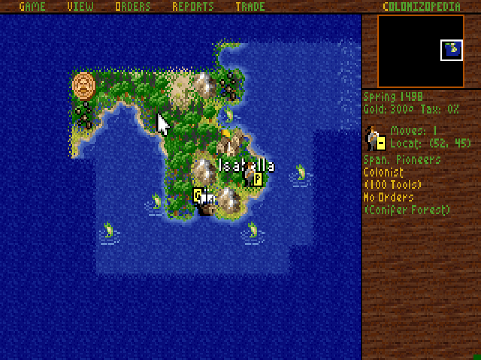 Aktuální snímek počítačové hry + Sid Meier's Colonization (GOG.com) + pochází z mého vlastního počítače.