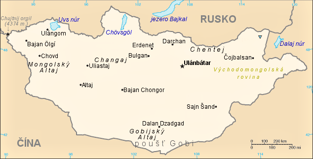 - Čeština: Orientační mapa Mongolska.