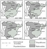 Dne 8. února dobyli po velké bitvě frankisté Malagu, v průběhu března zahájili ofenzivu severně od Madridu, ta však nepřenesla boje k Madridu. V dubnu vyvinuli frankisté vyšší aktivitu v Baskicku, kde 28. dubna dobyli Guernicu, která byla dva dny před tím vybombardována německými letadly.