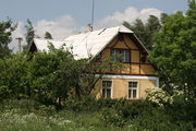 Domy v Dobré Vodě, v pozadí bývalá škola