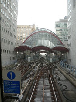 Růst kancelářského komplexu Canary Wharf si vyžádal rekonstrukci stanice Canry Wharf z malé zastávky na úrovni silnice na velký komplex se šesti nástupišti, který obsluhoval tři trati, s velkou kulatou střechou integrovanou do obchodního komplexu.