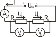 - \( \frac{U_x}{R_x} = \frac{U_N}{R_N} => R_x = R_N \frac{U_x}{U_N}\)