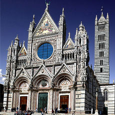 V roce 1284 zahájil stavbu průčelí Sienského dómu Giovanni Pisano. Vycházel přitom z francouzských. Spodní část průčelí zde člení trojice rozměrných portálů, horní patro zcela ovládá mohutná rozeta. Průčelí je sevřeno dvojicí štíhlých prolamovaných schodišťových věží, které jsou jako celé průčelí bohatě zdobeny vimperky, fiálami a další sochařskou výzdobou. Trojice trojúhelných štítů zaujaly plochy barevné mozaiky.