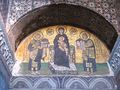 Hagia Sofia byla postavena na popud byzantského císaře Justiniána, a to na místě, kde stály již dříve dva basilikální chrámy Boží Moudrosti (řecky sofia) z let 335 a 415. Architekty stavby byli Isidor Mílétský a Anthémios z Trallu a byla vysvěcena 26. prosince 537, na vnitřní výzdobě mozaikami a freskami se pracovalo dalších více než sto let. Dodnes je nejvýznamnější památkou byzantské architektury, symbolem celého Istanbulu. Již roku 558 se její kupole při zemětřesení zřítila, další zemětřesení v letech 989 a 1346 neměla tak ničivý účinek. Chrám byl v této době také sídlem konstantinopolského patriarchy. Po dobytí Konstantinopole 4. křížovou výpravou byl chrám Boží Moudrosti sídlem latinského patriarchy konstantinopolského.