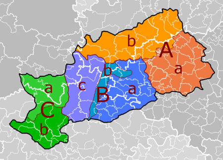 Rakovnická pahorkatina se z hlediska českého geomorfologického členění dělí na tři podcelky a sedm okrsků: