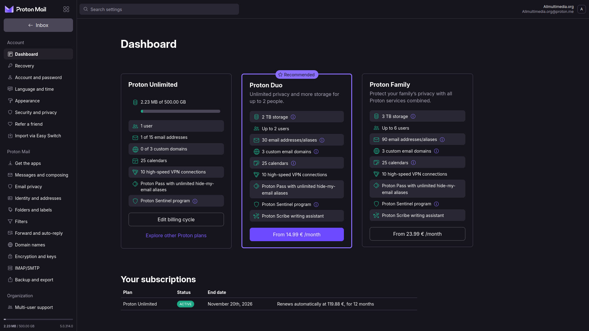 • Dnes 20.11. 2025 byla Super Gigantická encyklopedie Allmultimedia.org výrazně podpořena 500 GB emailového prostoru u společnosti Proton AG v rámci služby Proton Unlimited !