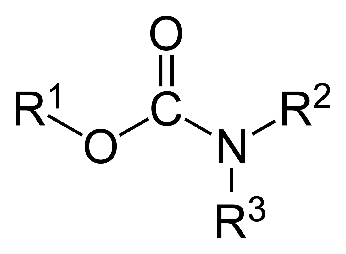 Vzorec + Description: Structural formula of the carbamate group, ROCONR2.