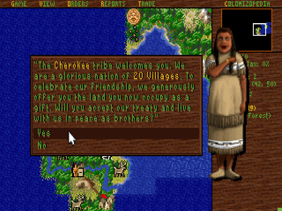 Aktuální snímek počítačové hry + Sid Meier's Colonization (GOG.com) + pochází z mého vlastního počítače.
