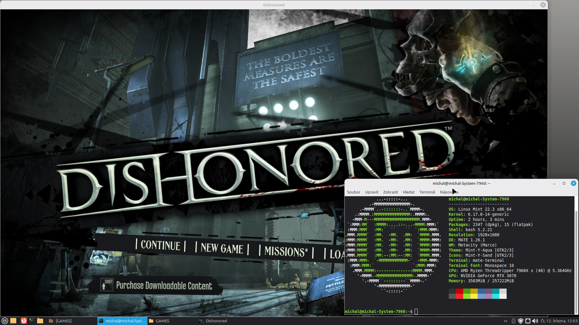 - Czech: Aktuální verze Wine je natolik výkonná a stabilní, že dlouhé hraní špičkové hry Dishonored není žádný problém !