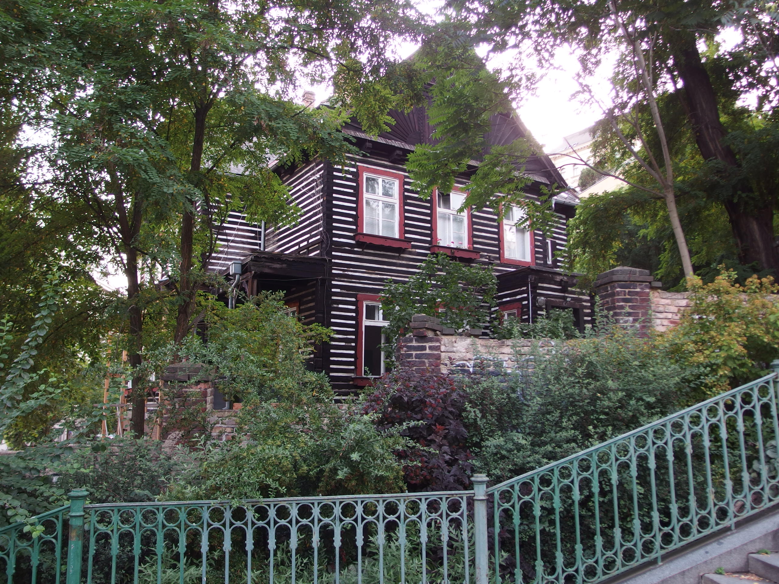 - Čeština: Praha-Vinohrady, Nuselské schody, dům Pod Zvonařkou 1746/7 – Pod Nuselskými schody 1746/7.