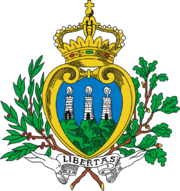 Štít je obklopen dubovou a vavřínovou ratolestí, které vyjadřují stálost republiky a obranu její svobody. Nad štítem je koruna symbolizující suverenitu státu. Zlatý nápis LIBERTAS (Svoboda) na stříbrné stuze má připomínat, že San Marino vzniklo poté, co tu jeho zakladatel hledal svobodu.