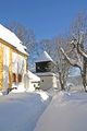 Do areálu kostela se vchází skrze čtyřhrannou kamennou zvonici s roubeným zvonovým patrem. Podle některých údajů je zvonice stará jako kostel a podle jiných pochází z doby kolem roku 1600. Patro nad ní bylo obnoveno roku 1790, přízemí sloužilo do roku 1947 jako márnice. V dřevěné části visí zvon Maria z roku 1480. V roce 1972 byly zavěšeny další dva zvony – Jan a Václav. Před 1. světovou válkou zde bývaly tyto zvony: první z roku 1561, druhý zvaný „poledník“ z roku 1872, třetí „umíráček“ z roku 1806 a čtvrtý na kostelní věži z roku 1862. Při rekvizici v roce 1917 byly tyto zvony odňaty a ponechána jen nejstarší Maria. Ani později zakoupené zvony z let 1919 a 1925 však nezůstaly dlouho: 3. dubna 1942 je sňali a odvezli Němci.