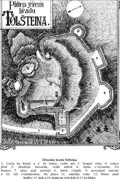 Půdorys zřícenin hradu Tolštejna podle Augusta Sedláčka