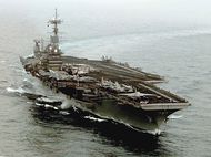 USS Independence (CV-62) at sea during the later 1980s or early 1990s (NH 97715).jpg