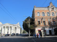 Palác Leščynského (vpravo) a Magarovo divadlo na Soborném prospektu