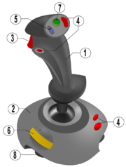 Některé moderní joysticky jsou vybaveny několika tlačítky a doplňkovými ovládacími prvky s programovatelnou funkcí. Ovládání pomocí joysticku se užívá zejména při hraní počítačových her a videoher, například u leteckých simulátorů se ovládání letadla velmi přibližuje skutečnosti.