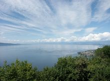 Na západě až ke břehům zasahují kopcovitá předhůří. Na východě jsou skalnaté hory, mezi nimiž a jezerem je jen úzká břehová terasa. Podél břehů vedou silnice a železnice. Počáteční východní malou část místní nazývají Haut Lac, Horní jezero, rozlehlou hlavní část Grand Lac, Velké jezero, západní, užší třetinu Petit Lac, Malé jezero.