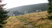 Moravská bouda, chata Vatra a chata Spindler při pohledu ze "zelené" turistické trasy